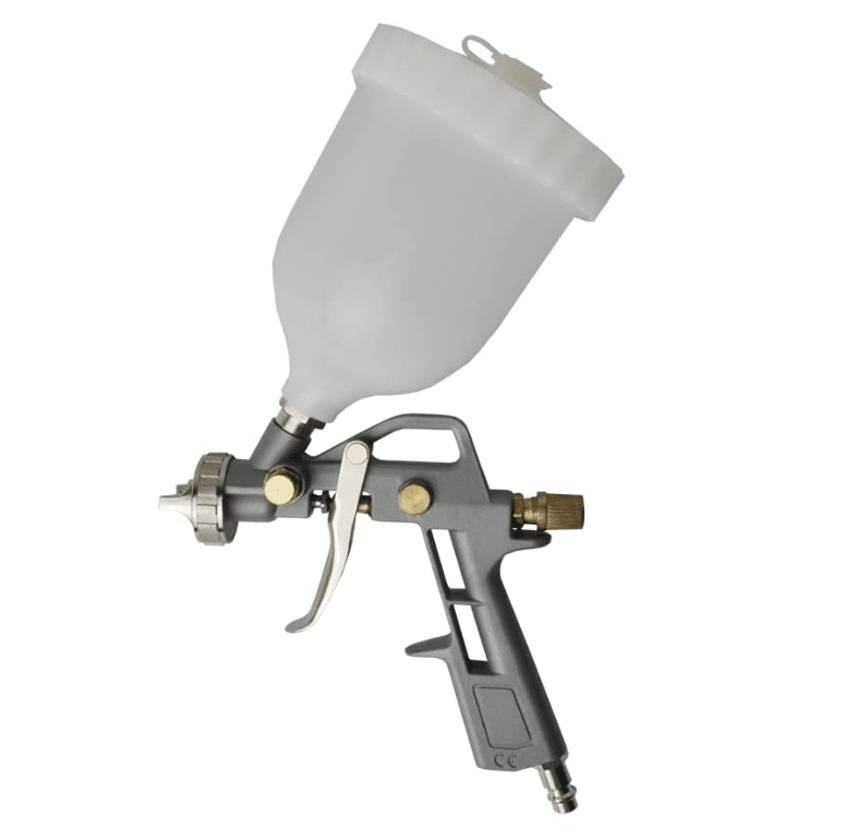 Paint spray gun with 0.6 litre gravity feed cup (4 bar max) and a 1.5mm nozzle (The spray gun requires 4.5-8CFM and air pressure of 45psi)