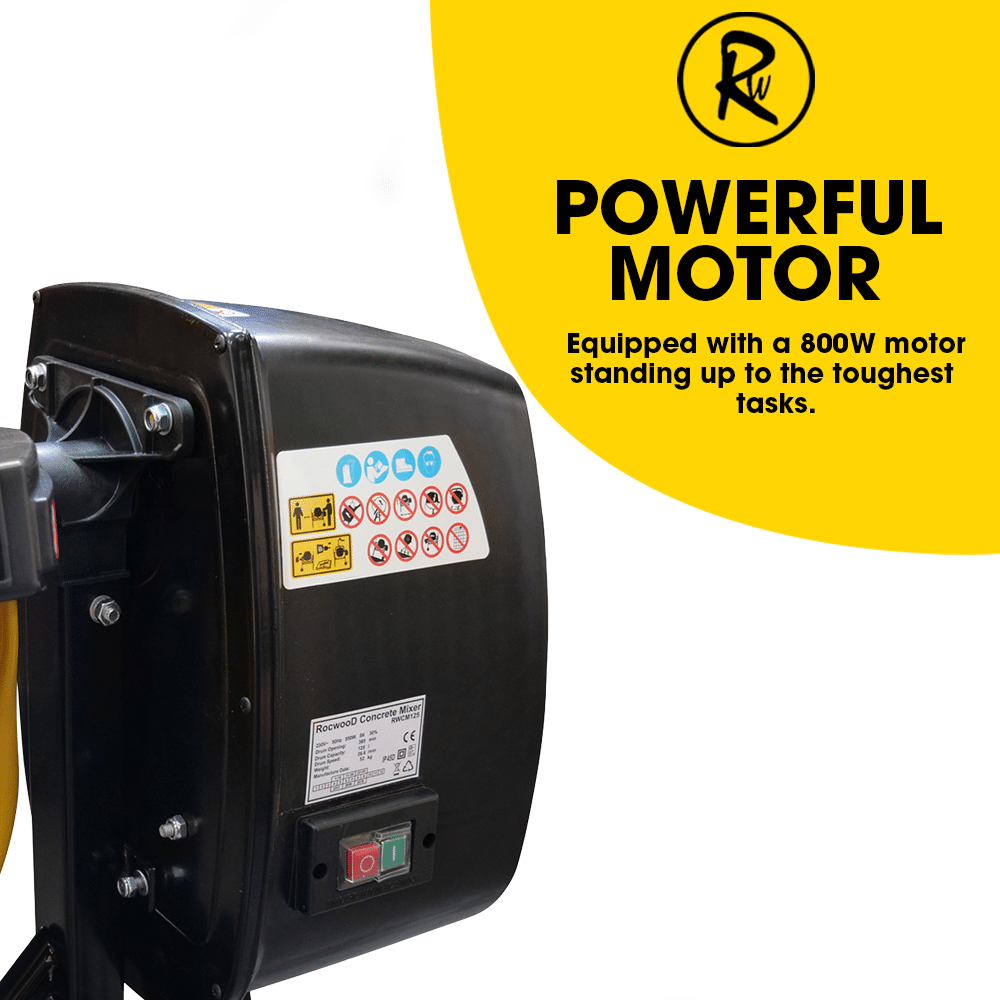 The RocwooD electric cement mixer has a supporting frame which enables you position the mixer to your requirement. They require far less effort than manual mixing and so save time and money.